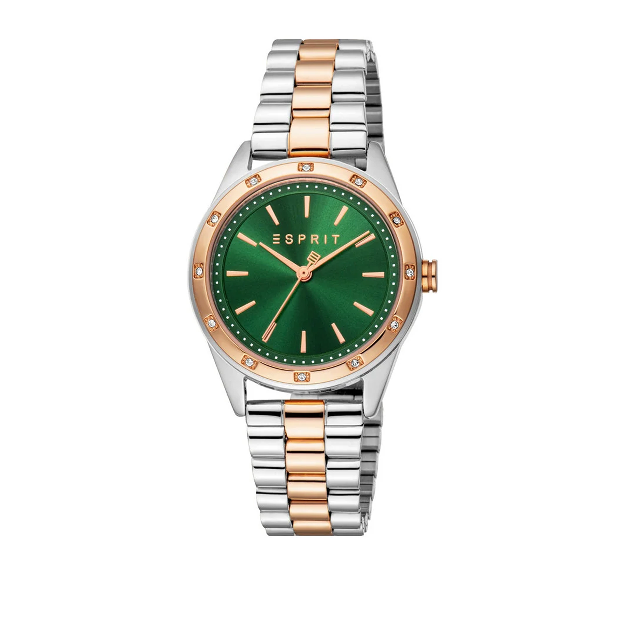 ساعت زنانه Esprit ES1L349M0065 با طراحی کلاسیک و مدرن، گزینهای ایدهآل برای استایلهای روزمره، رسمی و مجلسی است. کیفیت ساخت استاندارد برند Esprit، دوام بالای استیل و شیشه معدنی، این ساعت را به انتخابی هوشمندانه و لوکس برای بانوان تبدیل کرده است. همچنین طراحی صفحه سبز تیره و قاب دو رنگ باعث میشود ساعت در هر موقعیتی جلوهای چشمگیر داشته باشد.