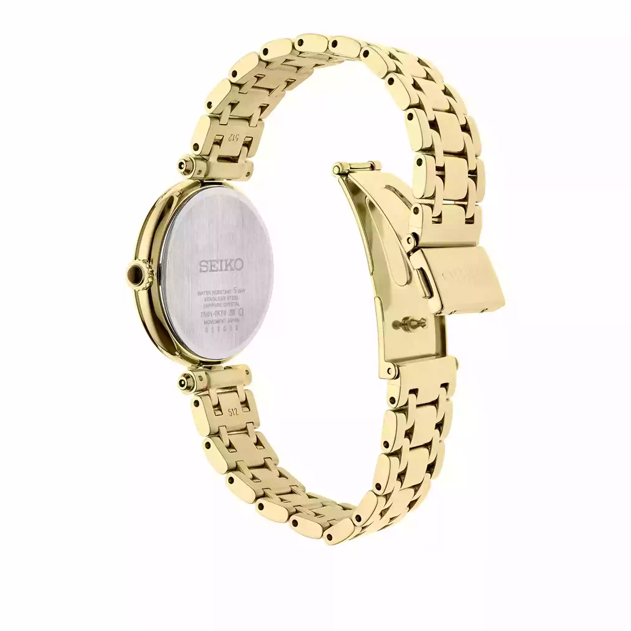 بدنه و بند ساعت Seiko SRZ554P1 از استیل ضدزنگ با کیفیت بالا ساخته شده که علاوه بر ظاهر براق و لوکس، مقاومت بالایی در برابر خط و خش و استفاده روزمره دارد. قفل ایمن بند، باعث میشود ساعت بهخوبی روی مچ قرار بگیرد و احساس راحتی و اطمینان را هنگام استفاده فراهم کند. شیشهی محافظ ساعت نیز از نوع Sapphire Crystal (یاقوت کبود) است که مقاومت بسیار بالایی در برابر خط و خش دارد و یکی از ویژگیهای مهم ساعتهای ردهبالا محسوب میشود.