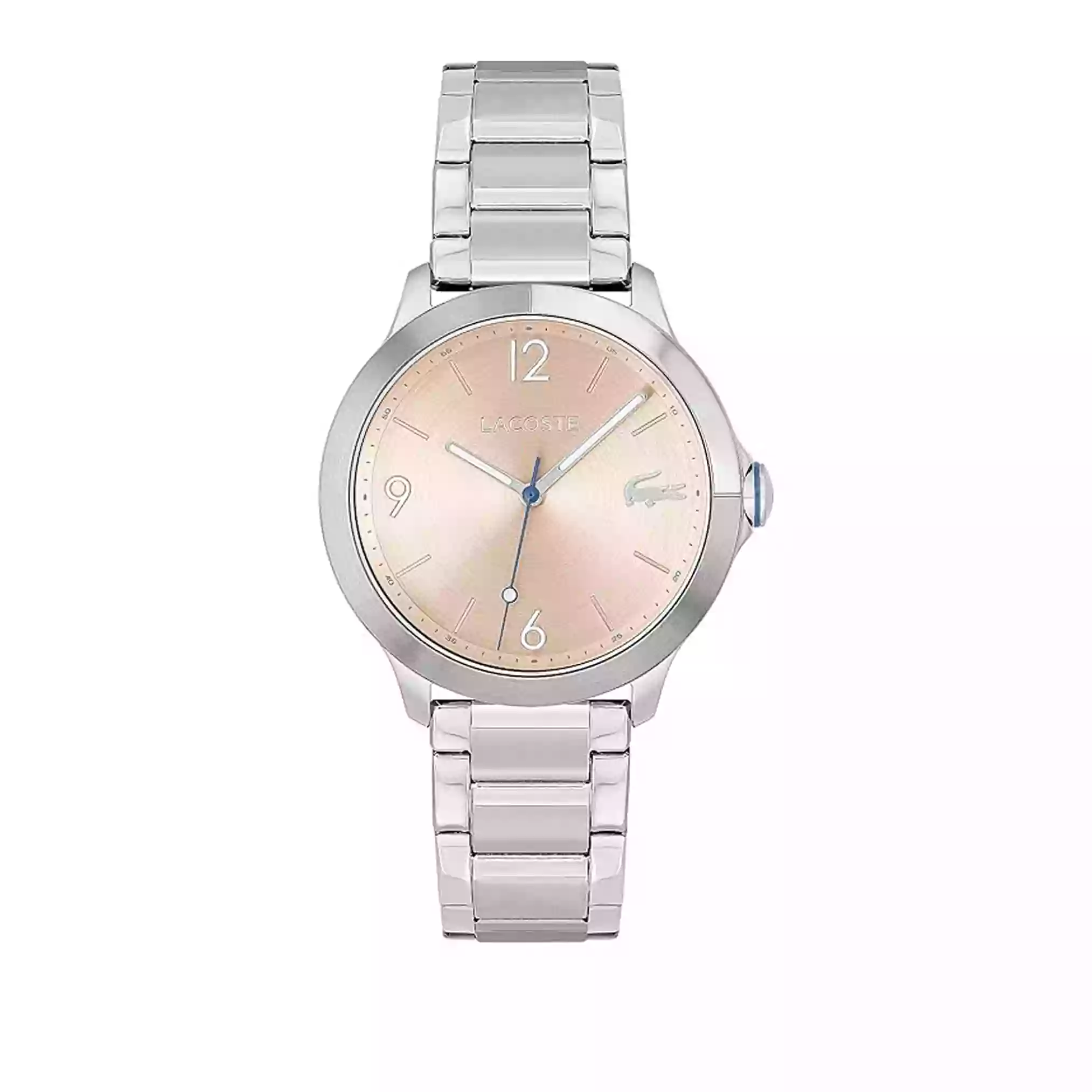 اگر دنبال یک ساعت زنانه هستید که هم شیک و زیبا باشد و هم برای استفاده روزمره مناسب، ساعت لاگوست (Lacoste) مدل2001333 انتخابی عالی است. این مدل با قاب و بند تمام استیل ضد زنگ، ظاهری براق و مدرن دارد که بهخوبی با انواع استایل از رسمی و اداری تا روزمره و کژوال ست میشود. رنگ نقرهای بند و بدنه در کنار صفحه رزگلد (صورتی ملایم) جلوهای زنانه و ظریف ایجاد میکند که هم کلاس دارد، هم جذابیت.